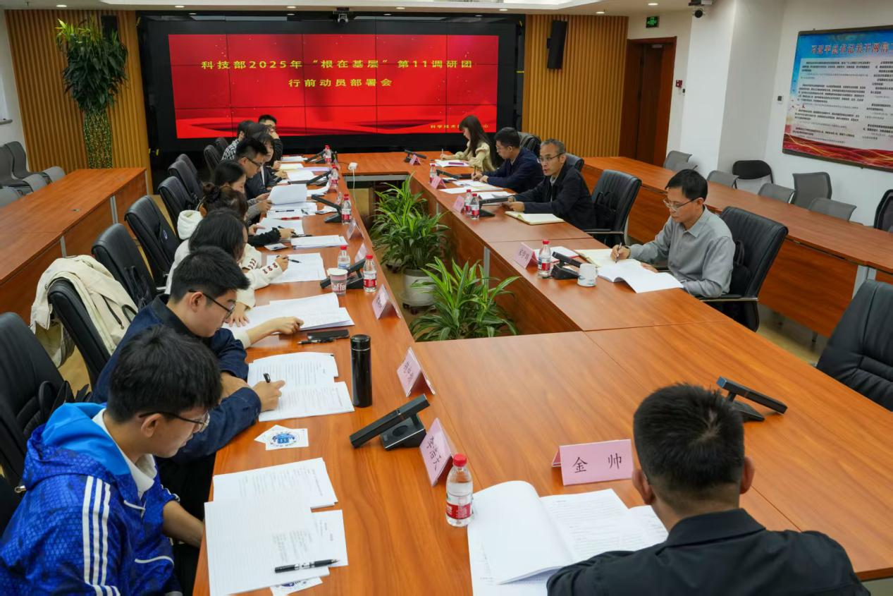 为深入学习贯彻习近平新时代中国特色社会主义思想,贯彻落实中央和国家机关工委关于年轻干部修好“三门课”、加强调查研究的部署要求,按照科技部机关党委、机关团委2025年“根在基层”调研实践活动工作安排,10月10日下午,由科技部信息中心牵头的“根在基层”第11调研团召开行前动员会。调研团将于10月13日-17日,前往湖南省长沙市、株洲市等地,围绕“信息化、数字化、智能化推动科技改革创新实践”开展调研。信息中心主任胡少华担任调研团导师,调研团成员来自科技部相关司局和事业单位。